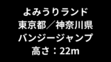 | 特徴 | 日本初のバンジージャンプ場。 当日飛べなくても再チャレンジ券を発行してもらえる。 |