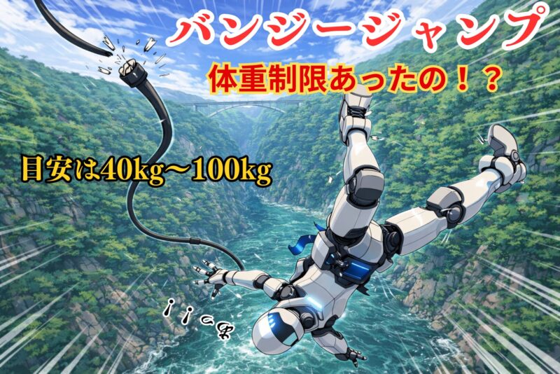 この記事では体重制限がある理由や日本の主なバンジージャンプ場の体重制限一覧、サバ読みの末路などを説明します。この記事を読めば各所の体重制限や体重のサバを読むことの危険性を理解できます。ぜひ最後まで読んでください。
