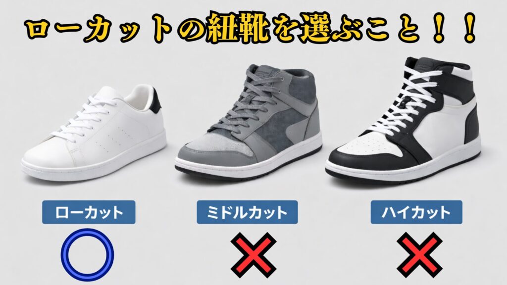 足首にハーネスを巻き付けるタイプのバンジージャンプ場では足首が隠れるような靴はNGとなります。紐靴の場合、ローカットはOKですが、ミドルカット、ハイカットはNGとなります。ローカットの紐靴がない場合は、事前に知り合いなどから借りておくか、現地での靴の貸し出しが可能か確認しておきましょう。最悪の場合、裸足という選択も考えられますが、それをNGとしている施設もあるため、事前確認が必要です。