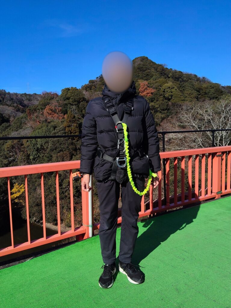 それ以外の注意点としてはバンジージャンプの性質上、高所に上がるため風が強く寒い場合があります。その対策として春や秋は長袖を着用した方がいい場合があります。また夏場は日差しを遮るものがなく、直射日光を浴びる可能性もありますので日焼け対策が必要になります。筆者は冬場に次のような服装で参加しました。