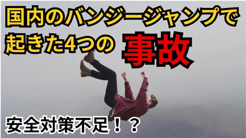 この記事では国内で起きたバンジージャンプに関する4つの事故について解説します。これからバンジージャンプを安全に飛ぶためにも知っておいて損はないと思います。