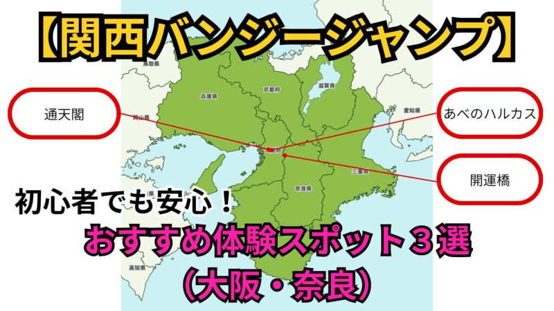 関西のバンジージャンプスポットをお探しの初心者必見。初めて飛ぶ方でも気軽に体験可能な関西のバンジージャンプスポットを3つ紹介します。場所は大阪の「あべのハルカス」「通天閣」、そして奈良の「開運橋」。1つはVR体験ができる施設。残りの2つは実際にバンジージャンプを行う施設です。まずはこの3つの施設でバンジージャンプを体験し、徐々にステップアップしてみませんか。